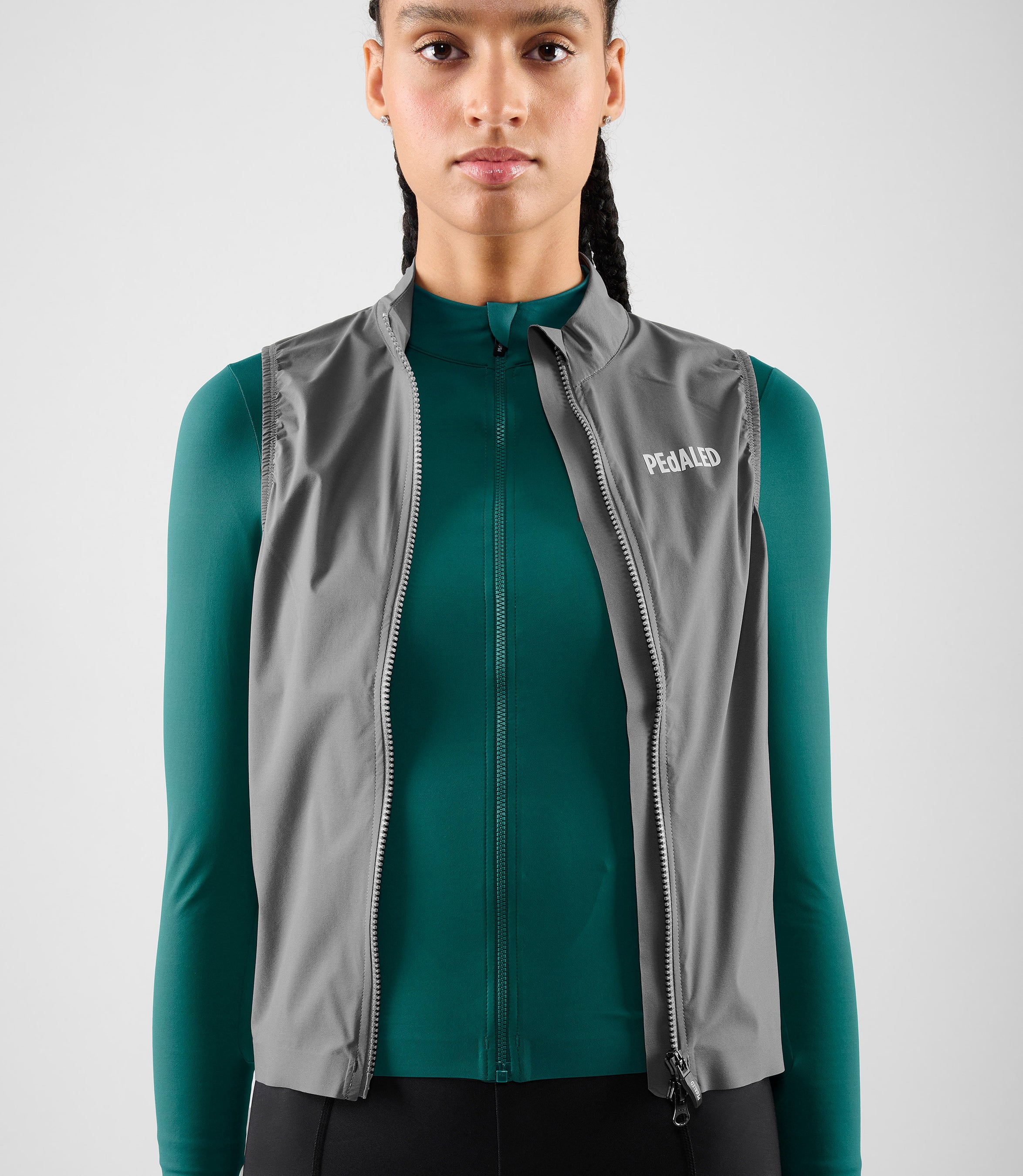 The no-pocket design of the Element Women’s Waterproof Vest can be paired with a jersey for extra carrying capacity.